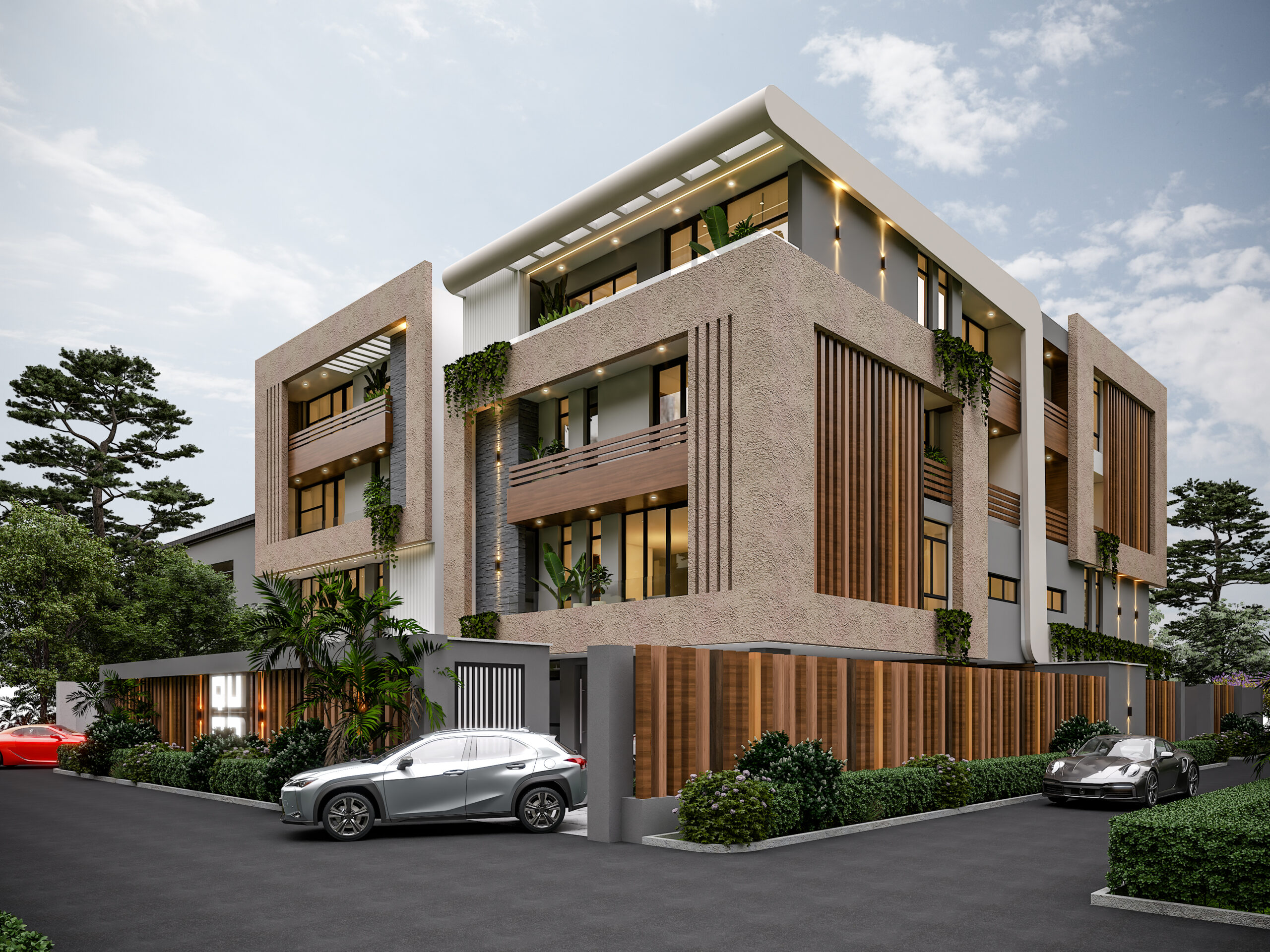 This 3-bedroom luxury apartment exemplifies modern sophistication through seamless spatial planning, warm textures, and refined detailing. Designed for contemporary urban living, the apartment harmonizes functionality with timeless aesthetics.The open-plan living and dining area is bathed in natural light through floor-to-ceiling windows, offering panoramic views while maintaining privacy through layered blinds and minimalist drapery. A neutral palette of whites, greys, and muted gold accents enhances the sense of openness, complemented by curated lighting that highlights art and architectural details.